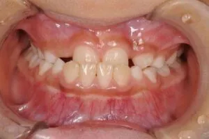 通常、前歯は上の前歯が下の前歯よりも前に生えているのが正常です。