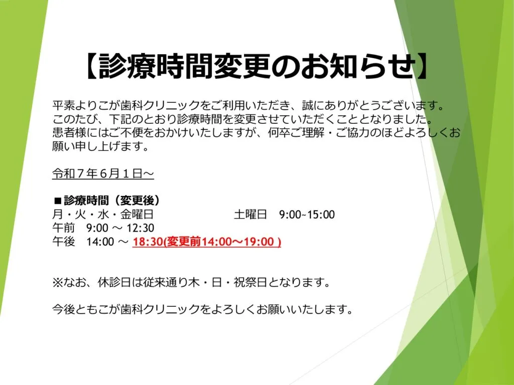 診療時間変更のお知らせ